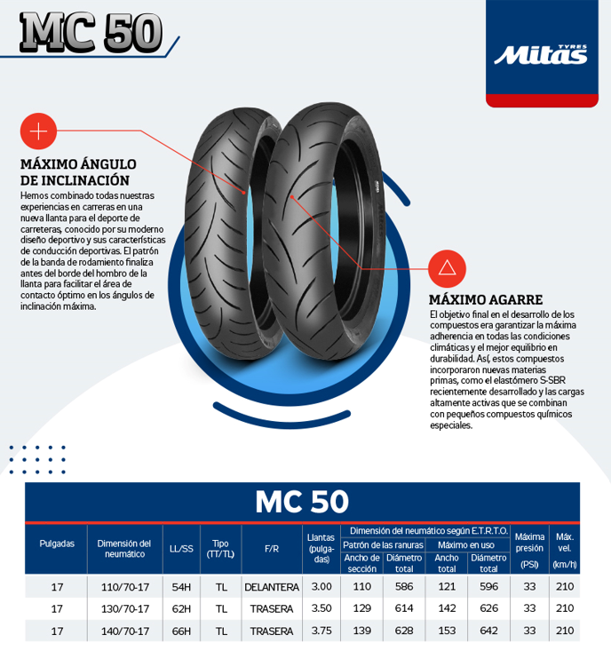 ¡El MC-50 también está disponible en las versiones de compuesto Blando y Super Blando para carreras que contribuyen al magnífico rendimiento en la pista y te convertirán en un campeón!